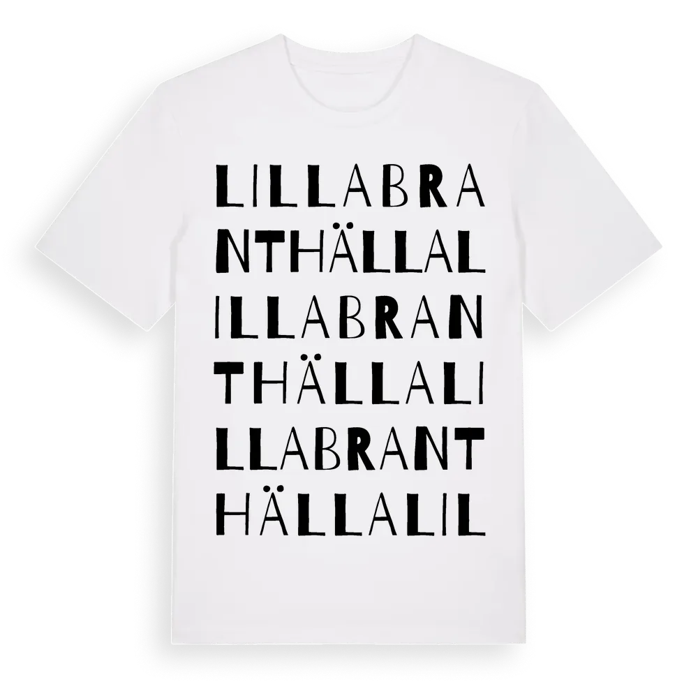 Lilla Branthälla ordlek t-shirt är inspirerad av Lilla Branthälla i Jönköpings län, Sverige. Tröjan är designad för dig som har en speciell koppling till platsen – oavsett om du bor här, har rötterna här eller bara älskar Lilla Branthälla.