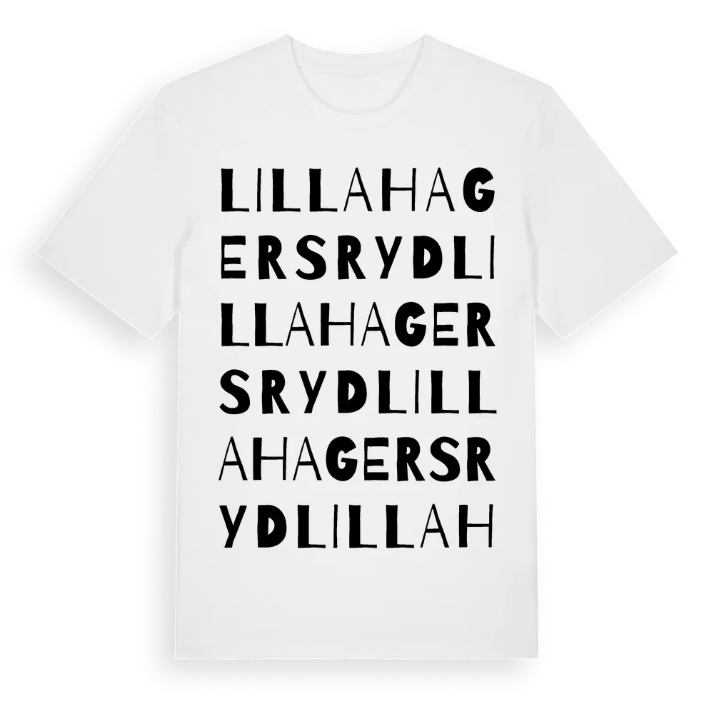 Lilla Hagersryd ordlek t-shirt är inspirerad av Lilla Hagersryd i Jönköpings län, Sverige. Tröjan är designad för dig som har en speciell koppling till platsen – oavsett om du bor här, har rötterna här eller bara älskar Lilla Hagersryd.