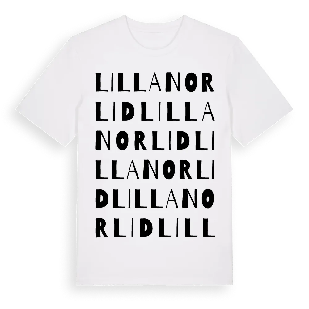 Lilla Norlid ordlek t-shirt är inspirerad av Lilla Norlid i Jönköpings län, Sverige. Tröjan är designad för dig som har en speciell koppling till platsen – oavsett om du bor här, har rötterna här eller bara älskar Lilla Norlid.