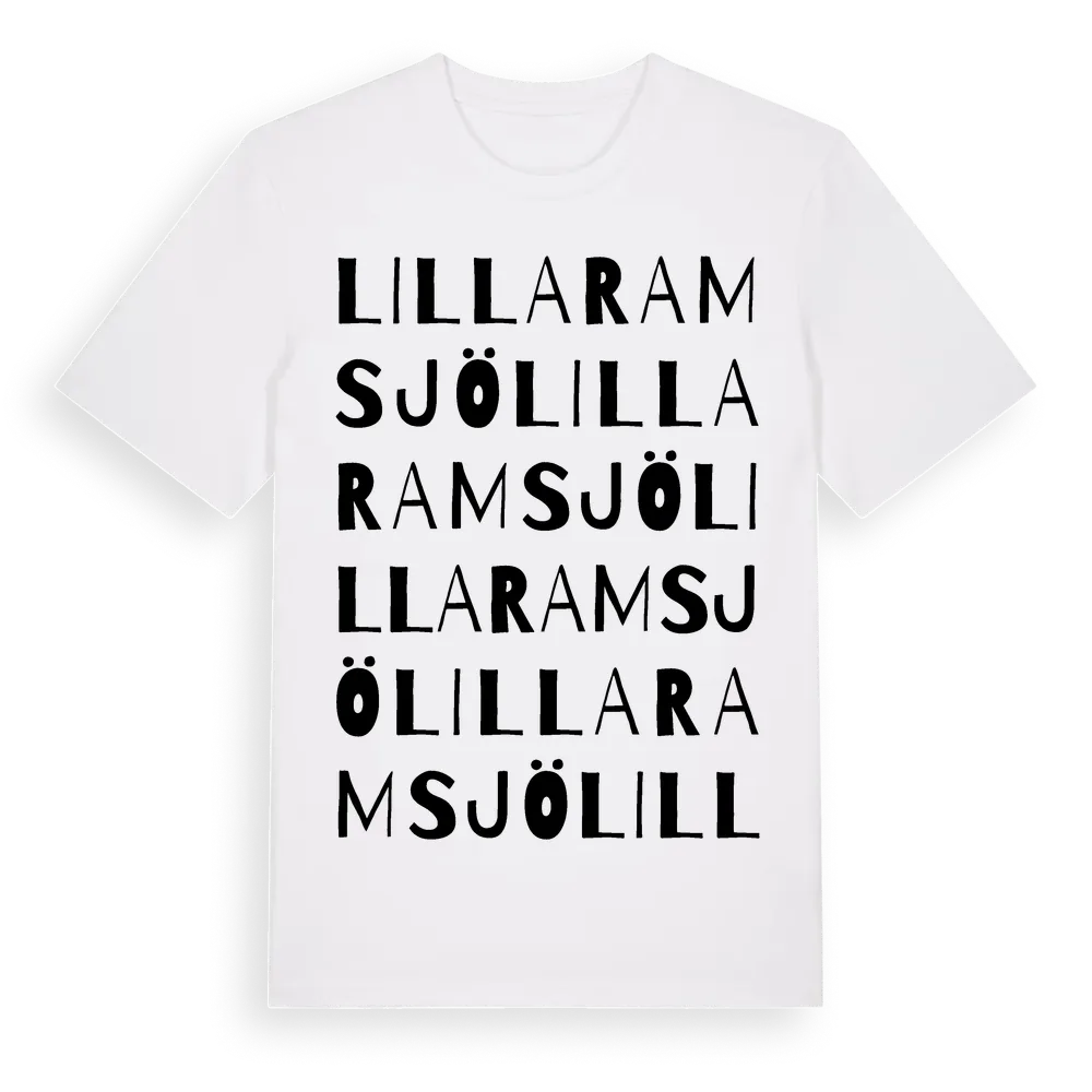 Lilla Ramsjö ordlek t-shirt är inspirerad av Lilla Ramsjö i Jönköpings län, Sverige. Tröjan är designad för dig som har en speciell koppling till platsen – oavsett om du bor här, har rötterna här eller bara älskar Lilla Ramsjö.