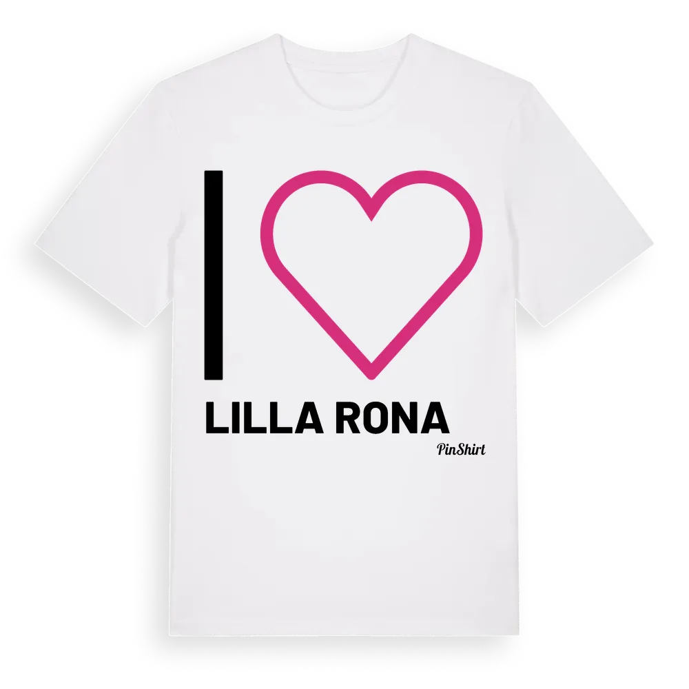 Det klassiska "I ❤ Lilla Rona"-motivet i stort format som täcker hela bröstet. För dig som vill visa kärleken till Lilla Rona på riktigt. Premium bomull, unisex – från byn Lilla Rona i Jönköpings län.
