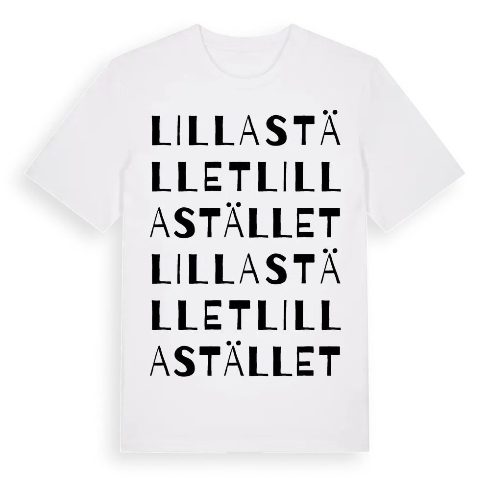 Lilla Stället ordlek t-shirt är inspirerad av Lilla Stället i Jönköpings län, Sverige. Tröjan är designad för dig som har en speciell koppling till platsen – oavsett om du bor här, har rötterna här eller bara älskar Lilla Stället.