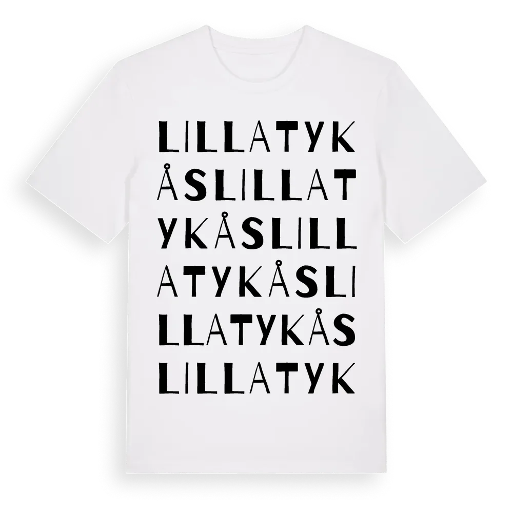 Lilla Tykås ordlek t-shirt är inspirerad av Lilla Tykås i Jönköpings län, Sverige. Tröjan är designad för dig som har en speciell koppling till platsen – oavsett om du bor här, har rötterna här eller bara älskar Lilla Tykås.
