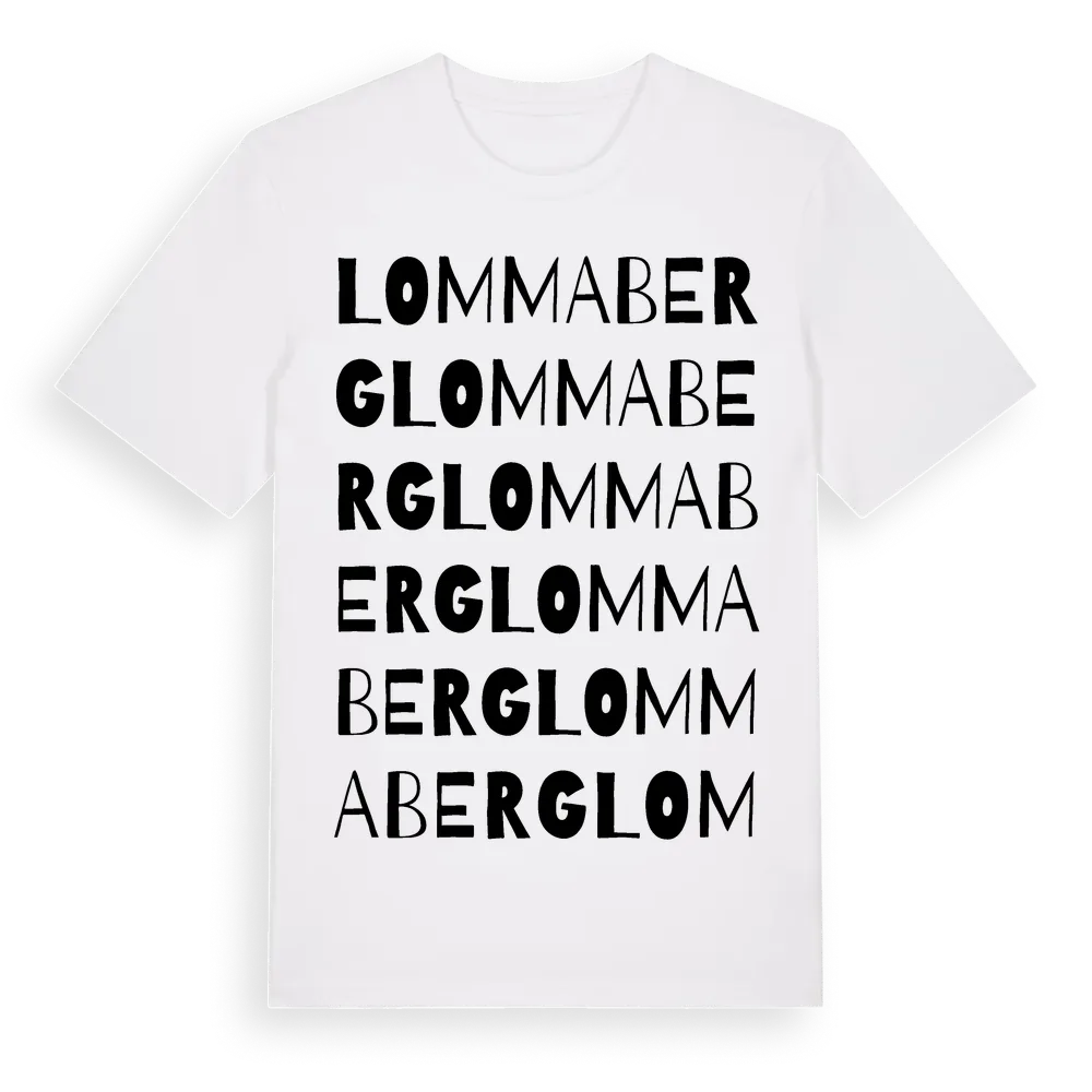 Lommaberg ordlek t-shirt är inspirerad av Lommaberg i Jönköpings län, Sverige. Tröjan är designad för dig som har en speciell koppling till platsen – oavsett om du bor här, har rötterna här eller bara älskar Lommaberg.