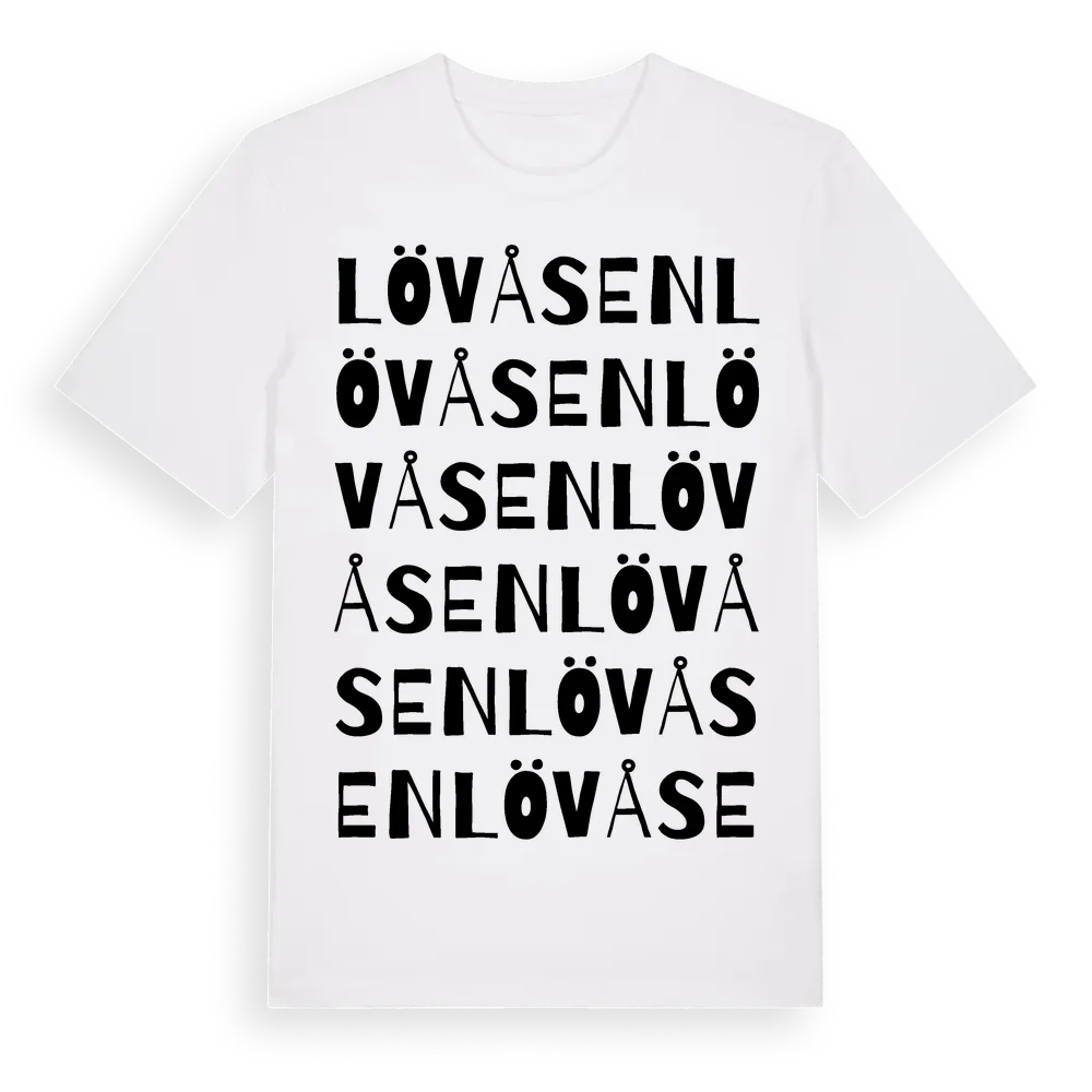 Lövåsen ordlek t-shirt är inspirerad av Lövåsen i Jönköpings län, Sverige. Tröjan är designad för dig som har en speciell koppling till platsen – oavsett om du bor här, har rötterna här eller bara älskar Lövåsen.