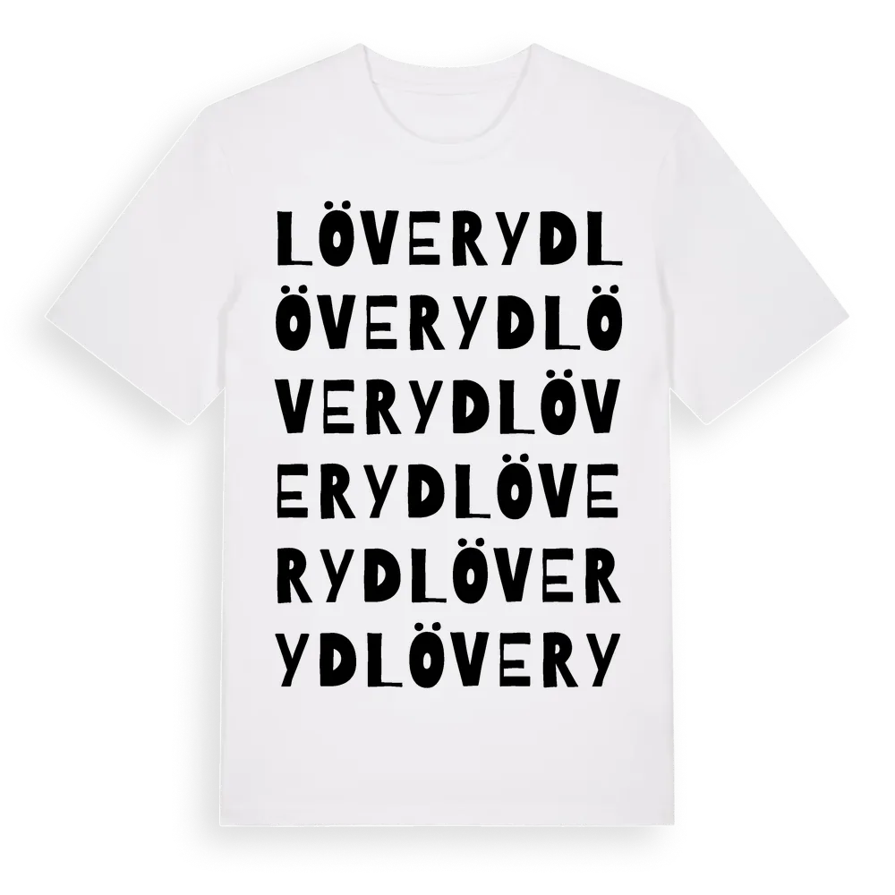 Löveryd ordlek t-shirt är inspirerad av byn Löveryd i Jönköpings län, Sverige. Tröjan är designad för dig som har en speciell koppling till platsen – oavsett om du bor här, har rötterna här eller bara älskar Löveryd.