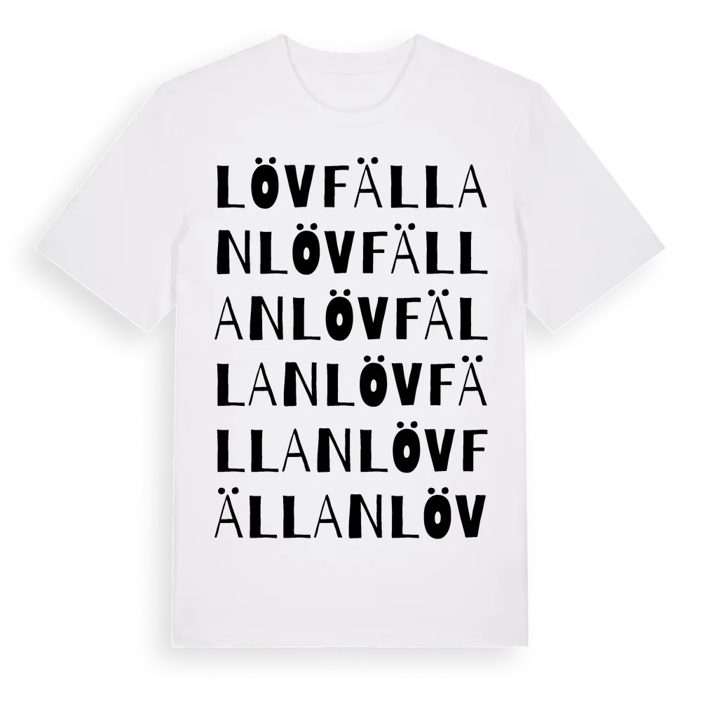 Lövfällan ordlek t-shirt är inspirerad av Lövfällan i Jönköpings län, Sverige. Tröjan är designad för dig som har en speciell koppling till platsen – oavsett om du bor här, har rötterna här eller bara älskar Lövfällan.