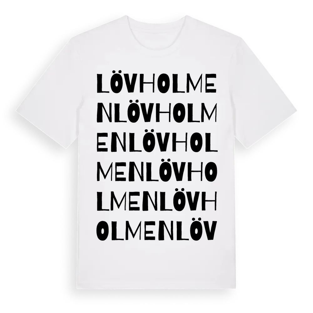 Lövholmen ordlek t-shirt är inspirerad av Lövholmen i Jönköpings län, Sverige. Tröjan är designad för dig som har en speciell koppling till platsen – oavsett om du bor här, har rötterna här eller bara älskar Lövholmen.