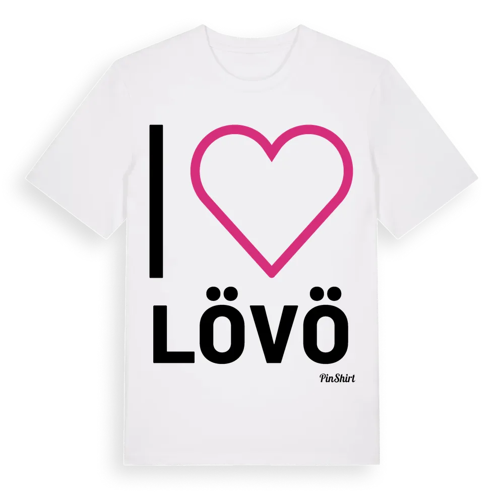 Det klassiska "I ❤ Lövö"-motivet i stort format som täcker hela bröstet. För dig som vill visa kärleken till Lövö på riktigt. Premium bomull, unisex – från Lövö i Jönköpings län.