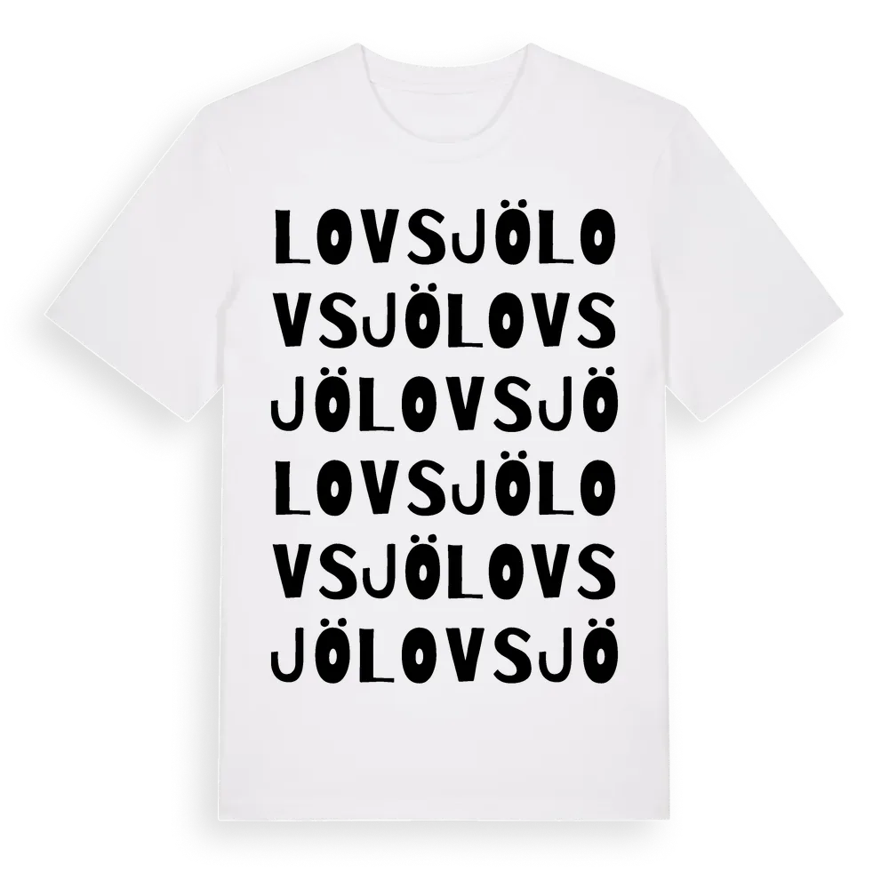 Lovsjö ordlek t-shirt är inspirerad av byn Lovsjö i Jönköpings län, Sverige. Tröjan är designad för dig som har en speciell koppling till platsen – oavsett om du bor här, har rötterna här eller bara älskar Lovsjö.