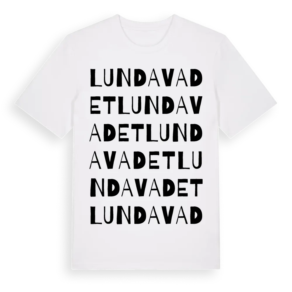 Lundavadet ordlek t-shirt är inspirerad av Lundavadet i Jönköpings län, Sverige. Tröjan är designad för dig som har en speciell koppling till platsen – oavsett om du bor här, har rötterna här eller bara älskar Lundavadet.