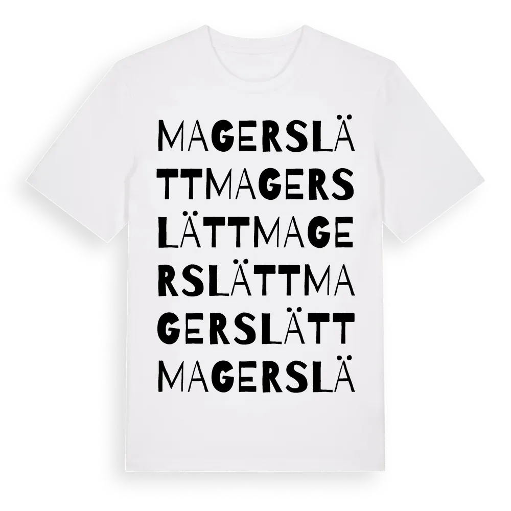 Magerslätt ordlek t-shirt är inspirerad av Magerslätt i Jönköpings län, Sverige. Tröjan är designad för dig som har en speciell koppling till platsen – oavsett om du bor här, har rötterna här eller bara älskar Magerslätt.