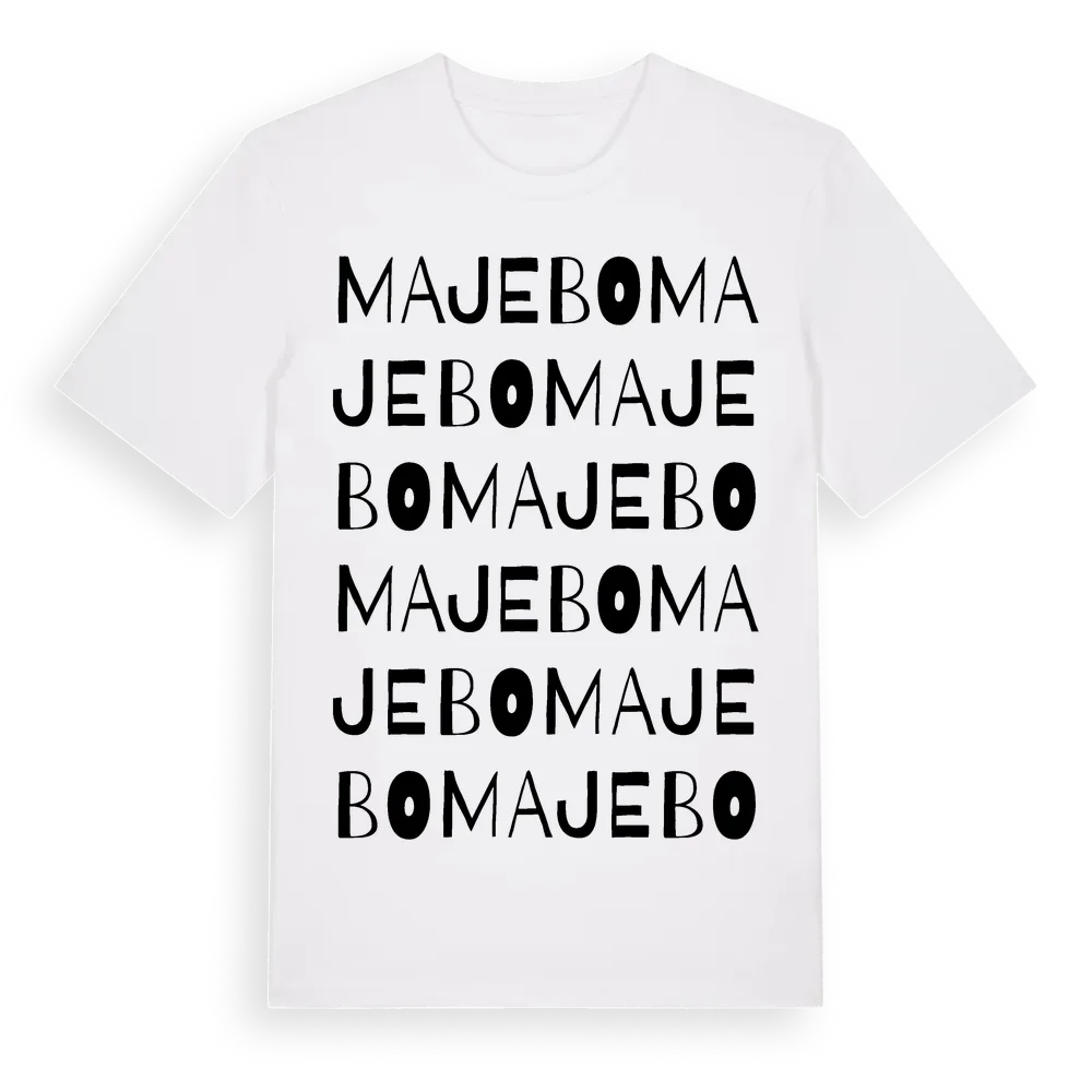 Majebo ordlek t-shirt är inspirerad av Majebo i Jönköpings län, Sverige. Tröjan är designad för dig som har en speciell koppling till platsen – oavsett om du bor här, har rötterna här eller bara älskar Majebo.