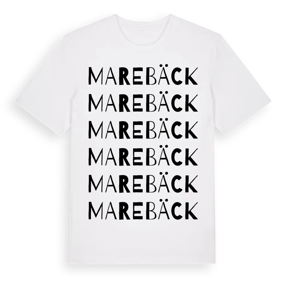 Marebäck ordlek t-shirt är inspirerad av Marebäck i Jönköpings län, Sverige. Tröjan är designad för dig som har en speciell koppling till platsen – oavsett om du bor här, har rötterna här eller bara älskar Marebäck.