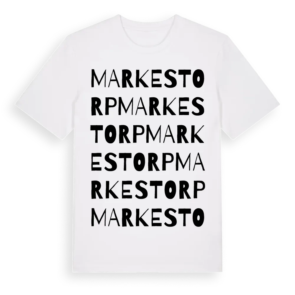 Markestorp ordlek t-shirt är inspirerad av Markestorp i Jönköpings län, Sverige. Tröjan är designad för dig som har en speciell koppling till platsen – oavsett om du bor här, har rötterna här eller bara älskar Markestorp.