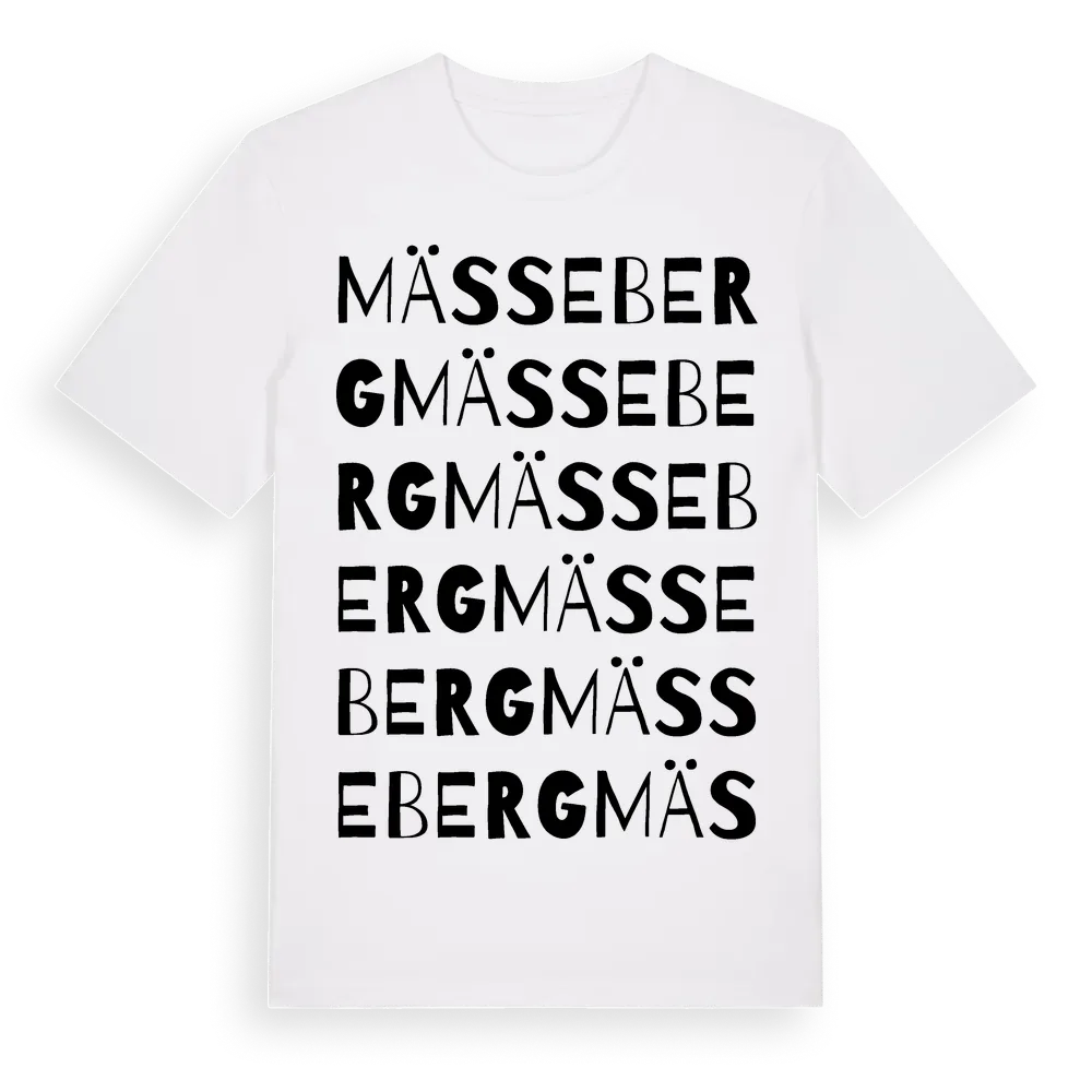 En ordlek byggd på Mässebergs namn. Subtilt och klurig – ett motiv som bara de som verkligen känner platsen fullt ut förstår. Premium bomull, unisex – från byn Mässeberg i Jönköpings län.