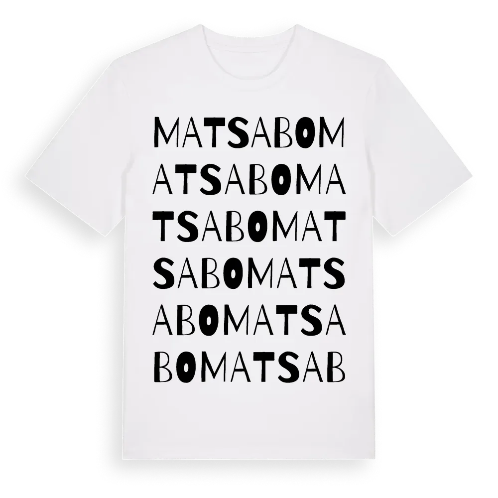 Matsabo ordlek t-shirt är inspirerad av Matsabo i Jönköpings län, Sverige. Tröjan är designad för dig som har en speciell koppling till platsen – oavsett om du bor här, har rötterna här eller bara älskar Matsabo.