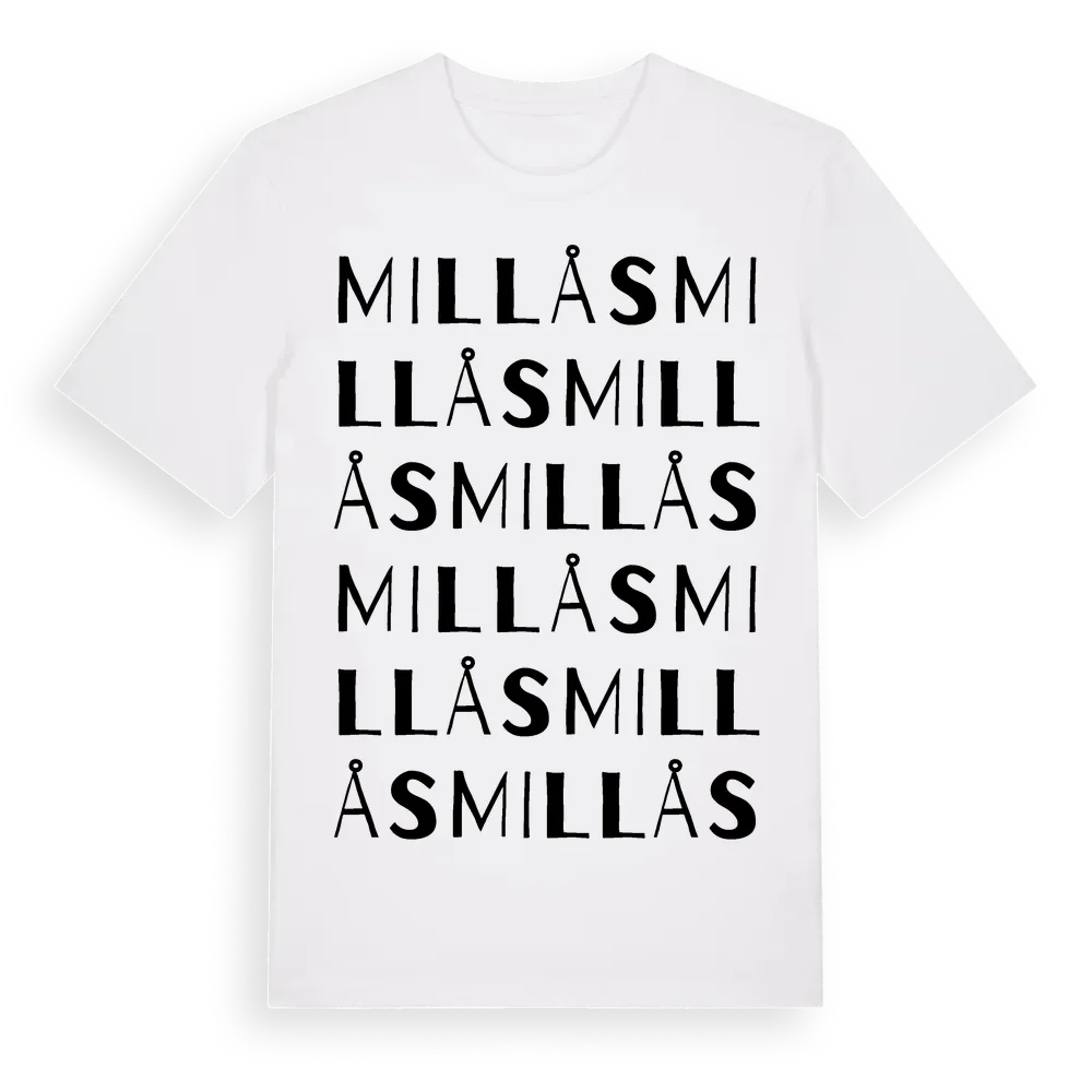 Millås ordlek t-shirt är inspirerad av Millås i Jönköpings län, Sverige. Tröjan är designad för dig som har en speciell koppling till platsen – oavsett om du bor här, har rötterna här eller bara älskar Millås.