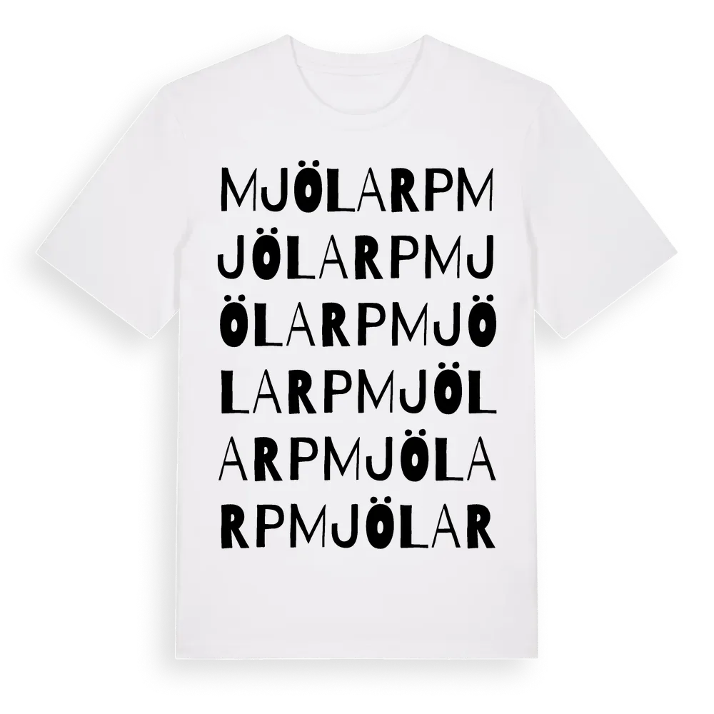 Mjölarp ordlek t-shirt är inspirerad av Mjölarp i Jönköpings län, Sverige. Tröjan är designad för dig som har en speciell koppling till platsen – oavsett om du bor här, har rötterna här eller bara älskar Mjölarp.
