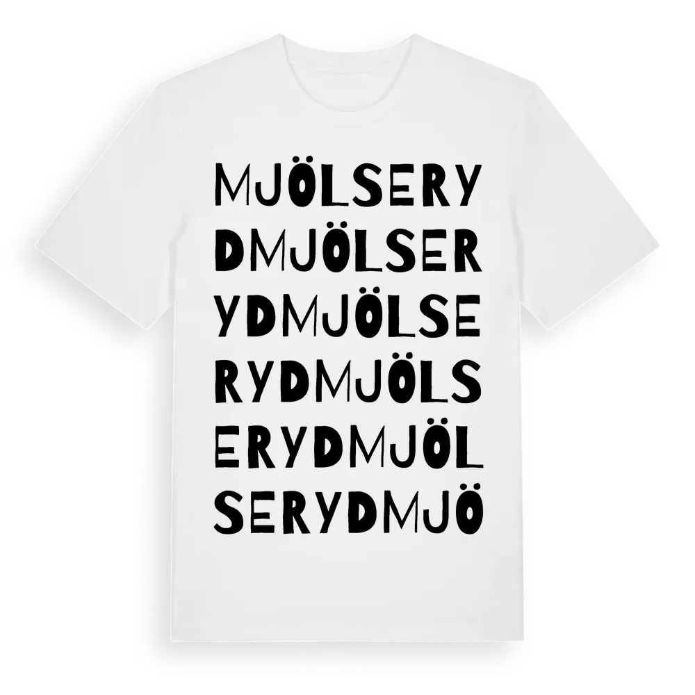 Mjölseryd ordlek t-shirt är inspirerad av Mjölseryd i Jönköpings län, Sverige. Tröjan är designad för dig som har en speciell koppling till platsen – oavsett om du bor här, har rötterna här eller bara älskar Mjölseryd.