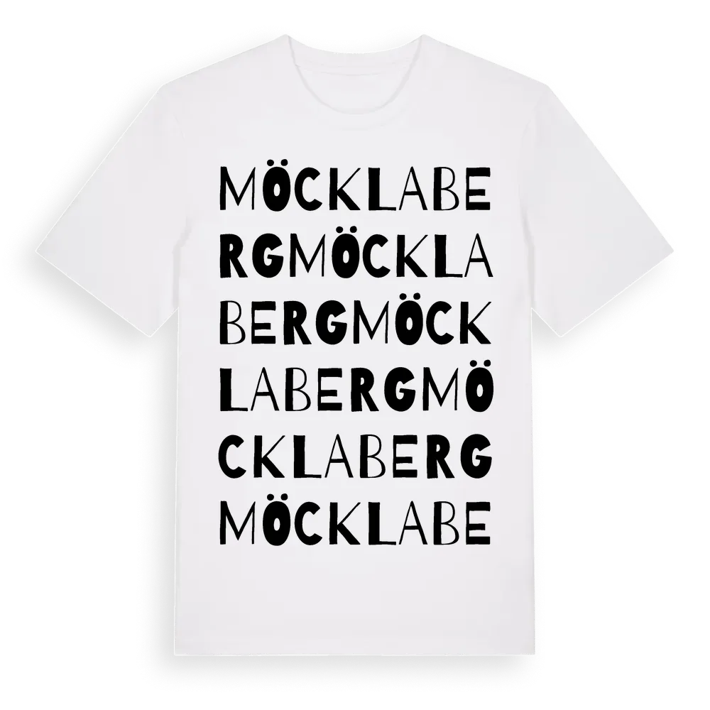 Möcklaberg ordlek t-shirt är inspirerad av Möcklaberg i Jönköpings län, Sverige. Tröjan är designad för dig som har en speciell koppling till platsen – oavsett om du bor här, har rötterna här eller bara älskar Möcklaberg.