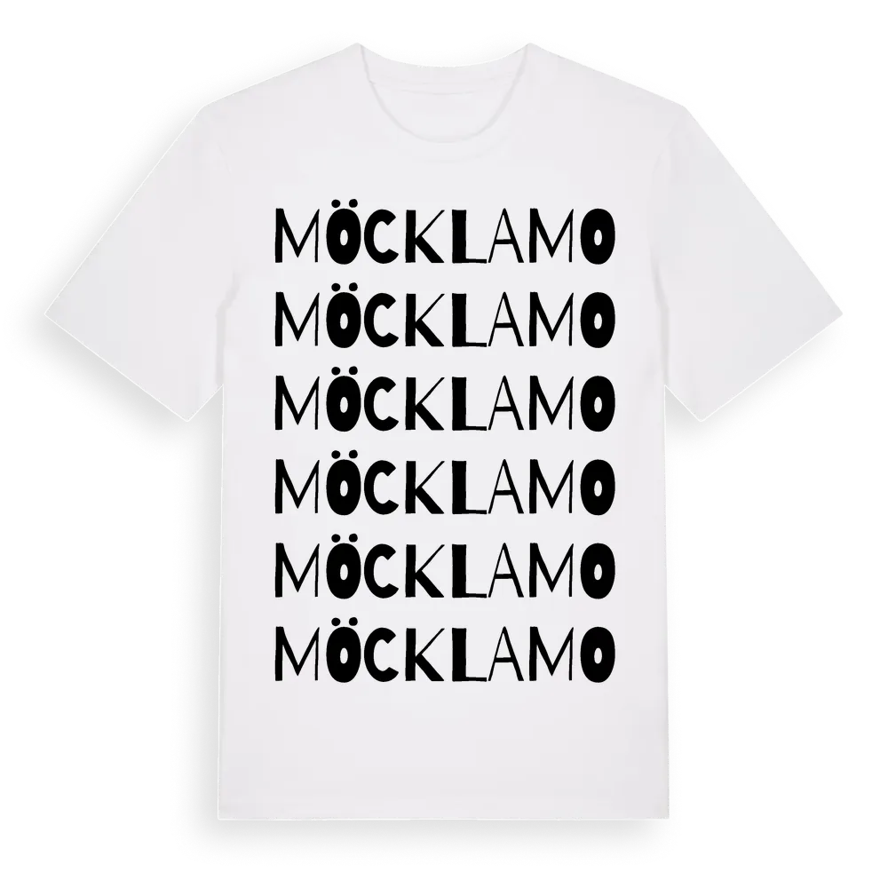 En ordlek byggd på Möcklamos namn. Subtilt och klurig – ett motiv som bara de som verkligen känner platsen fullt ut förstår. Premium bomull, unisex – från byn Möcklamo i Jönköpings län.
