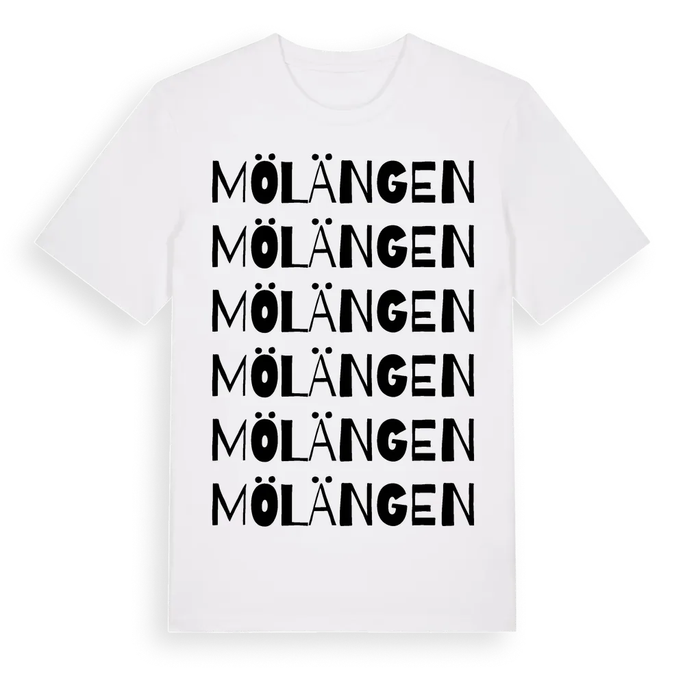Mölängen ordlek t-shirt är inspirerad av Mölängen i Jönköpings län, Sverige. Tröjan är designad för dig som har en speciell koppling till platsen – oavsett om du bor här, har rötterna här eller bara älskar Mölängen.