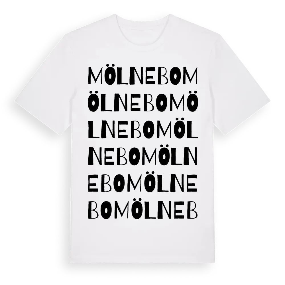 Mölnebo ordlek t-shirt är inspirerad av Mölnebo i Jönköpings län, Sverige. Tröjan är designad för dig som har en speciell koppling till platsen – oavsett om du bor här, har rötterna här eller bara älskar Mölnebo.