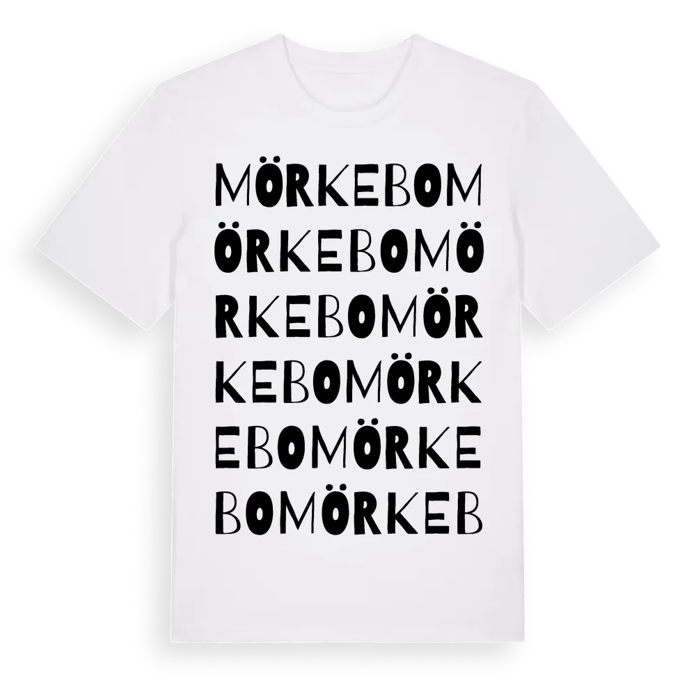 Mörkebo ordlek t-shirt är inspirerad av Mörkebo i Jönköpings län, Sverige. Tröjan är designad för dig som har en speciell koppling till platsen – oavsett om du bor här, har rötterna här eller bara älskar Mörkebo.