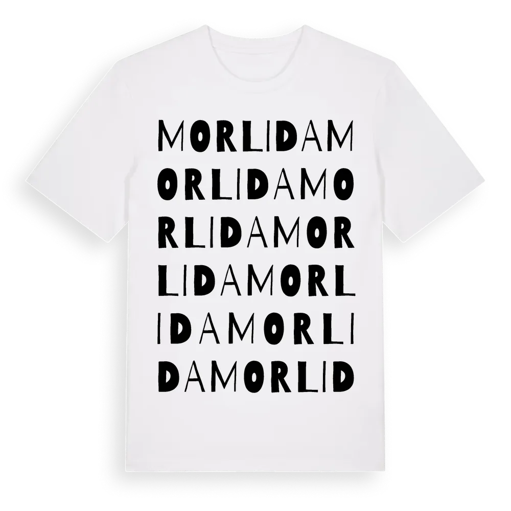 Morlida ordlek t-shirt är inspirerad av byn Morlida i Jönköpings län, Sverige. Tröjan är designad för dig som har en speciell koppling till platsen – oavsett om du bor här, har rötterna här eller bara älskar Morlida.