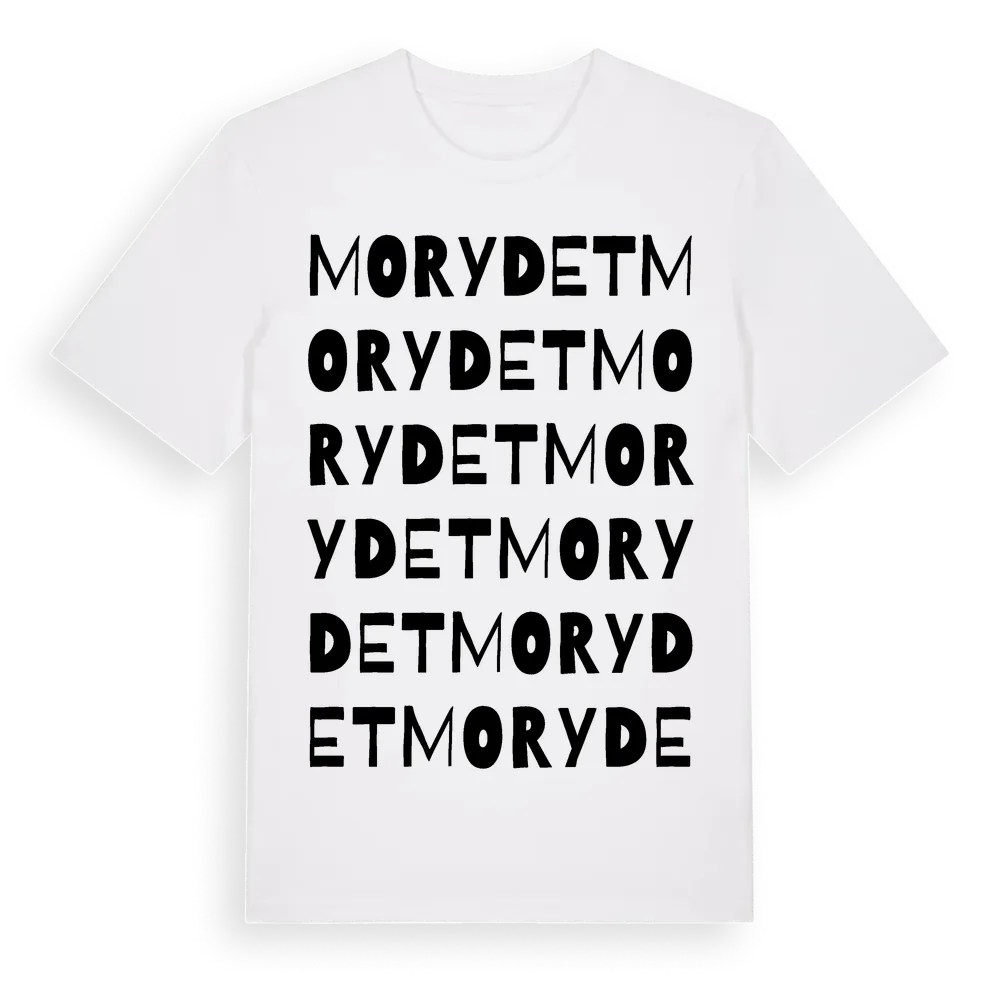 Morydet ordlek t-shirt är inspirerad av Morydet i Jönköpings län, Sverige. Tröjan är designad för dig som har en speciell koppling till platsen – oavsett om du bor här, har rötterna här eller bara älskar Morydet.