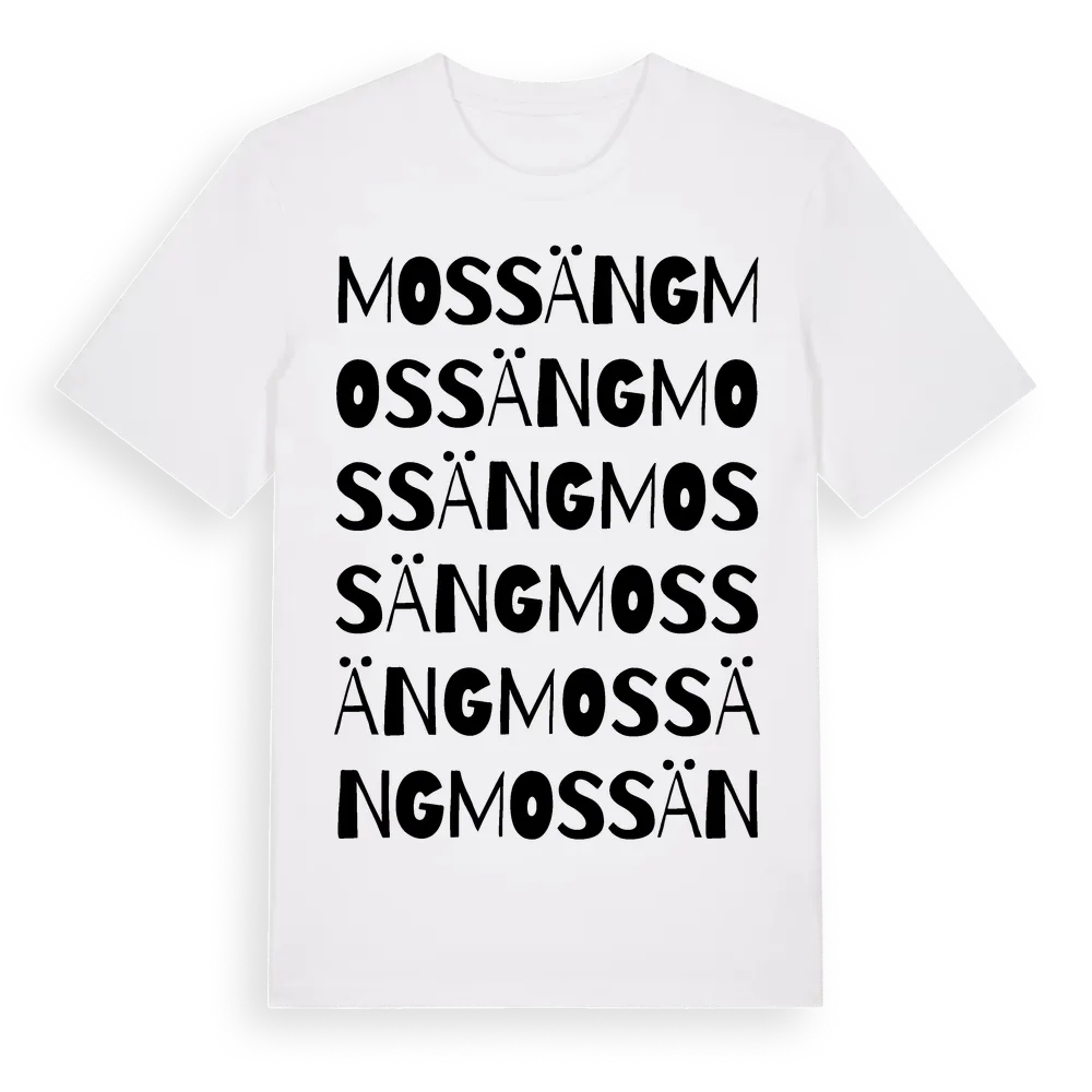 Mossäng ordlek t-shirt är inspirerad av Mossäng i Jönköpings län, Sverige. Tröjan är designad för dig som har en speciell koppling till platsen – oavsett om du bor här, har rötterna här eller bara älskar Mossäng.