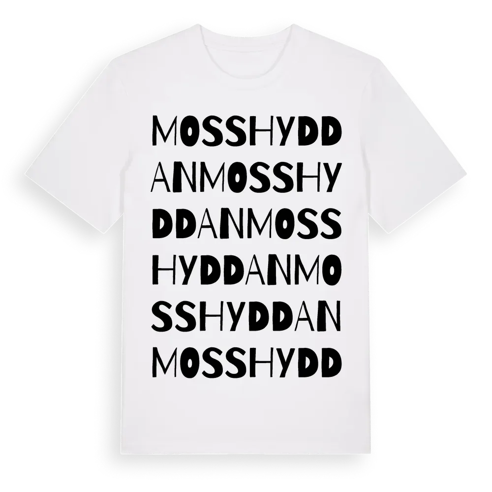 Mosshyddan ordlek t-shirt är inspirerad av Mosshyddan i Jönköpings län, Sverige. Tröjan är designad för dig som har en speciell koppling till platsen – oavsett om du bor här, har rötterna här eller bara älskar Mosshyddan.