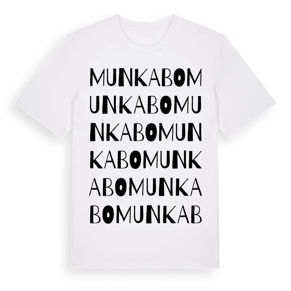 Munkabo ordlek t-shirt är inspirerad av byn Munkabo i Jönköpings län, Sverige. Tröjan är designad för dig som har en speciell koppling till platsen – oavsett om du bor här, har rötterna här eller bara älskar Munkabo.