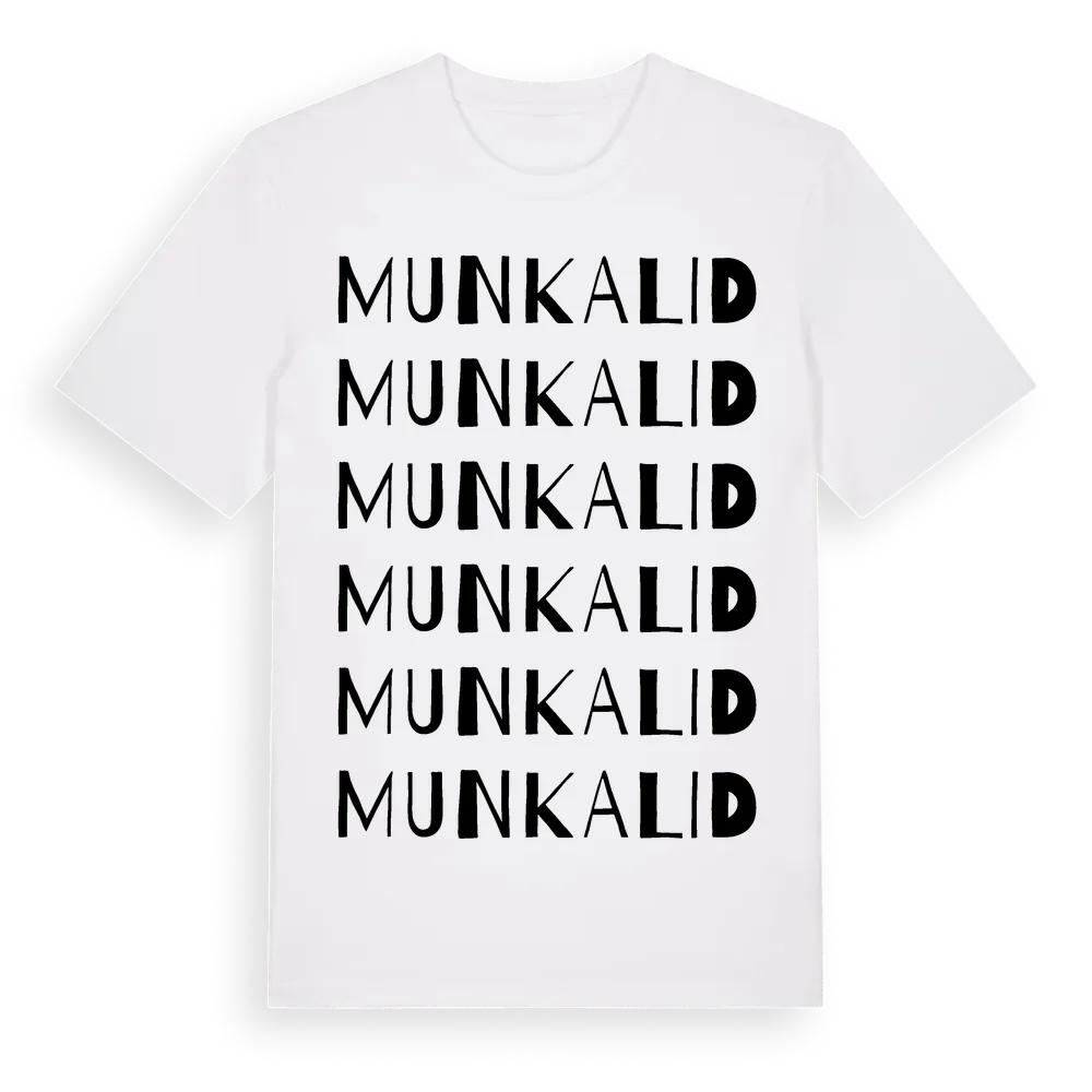 Munkalid ordlek t-shirt är inspirerad av Munkalid i Jönköpings län, Sverige. Tröjan är designad för dig som har en speciell koppling till platsen – oavsett om du bor här, har rötterna här eller bara älskar Munkalid.