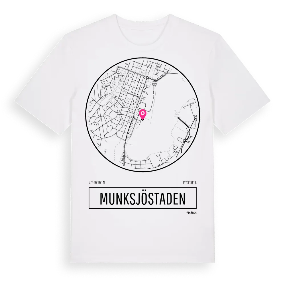 Munksjöstaden t-shirt är inspirerad av stadsdelen Munksjöstaden i Jönköpings län, Sverige. Tröjan är designad för dig som har en speciell koppling till platsen – oavsett om du bor här, har rötterna här eller bara älskar Munksjöstaden.