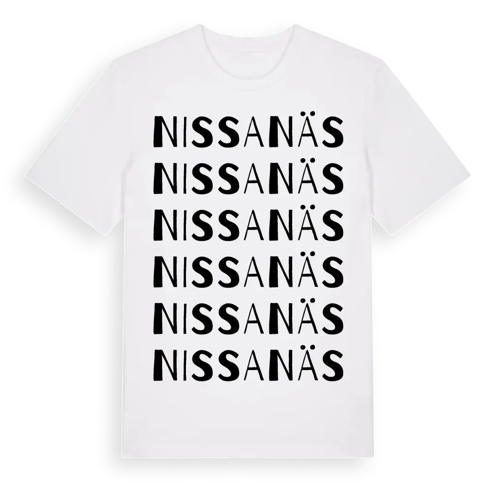 Nissanäs ordlek t-shirt är inspirerad av Nissanäs i Jönköpings län, Sverige. Tröjan är designad för dig som har en speciell koppling till platsen – oavsett om du bor här, har rötterna här eller bara älskar Nissanäs.