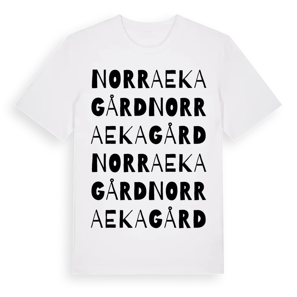 Norra Ekagård ordlek t-shirt är inspirerad av byn Norra Ekagård i Jönköpings län, Sverige. Tröjan är designad för dig som har en speciell koppling till platsen – oavsett om du bor här, har rötterna här eller bara älskar Norra Ekagård.