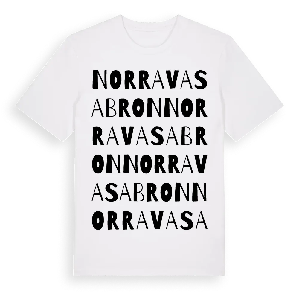 Norra Vasabron ordlek t-shirt är inspirerad av Norra Vasabron i Jönköpings län, Sverige. Tröjan är designad för dig som har en speciell koppling till platsen – oavsett om du bor här, har rötterna här eller bara älskar Norra Vasabron.