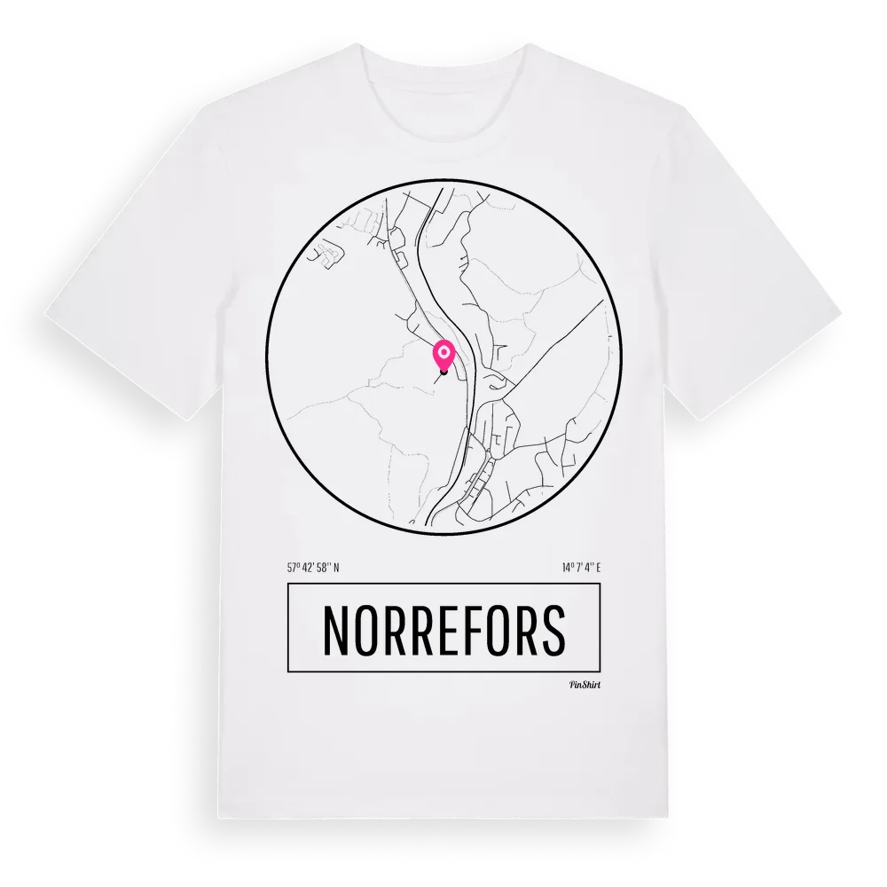 Norrefors t-shirt är inspirerad av stadsdelen Norrefors i Jönköpings län, Sverige. Tröjan är designad för dig som har en speciell koppling till platsen – oavsett om du bor här, har rötterna här eller bara älskar Norrefors.