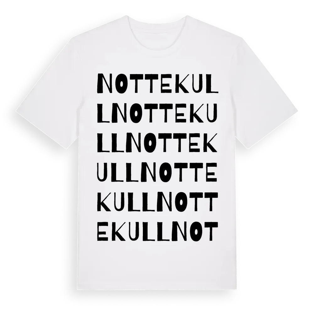 Nottekull ordlek t-shirt är inspirerad av byn Nottekull i Jönköpings län, Sverige. Tröjan är designad för dig som har en speciell koppling till platsen – oavsett om du bor här, har rötterna här eller bara älskar Nottekull.