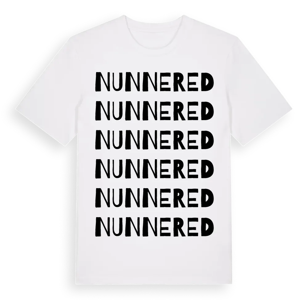En ordlek byggd på Nunnereds namn. Subtilt och klurig – ett motiv som bara de som verkligen känner platsen fullt ut förstår. Premium bomull, unisex – från byn Nunnered i Jönköpings län.