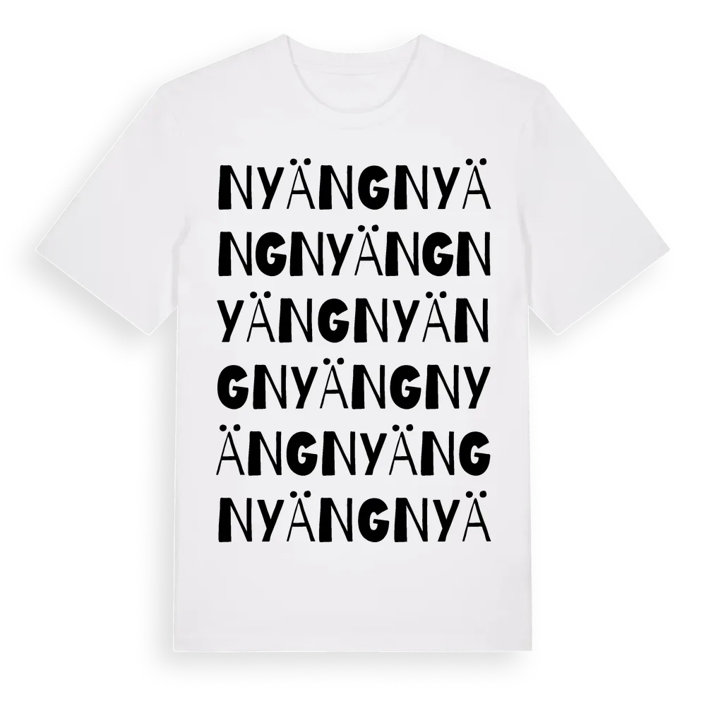 Nyäng ordlek t-shirt är inspirerad av Nyäng i Jönköpings län, Sverige. Tröjan är designad för dig som har en speciell koppling till platsen – oavsett om du bor här, har rötterna här eller bara älskar Nyäng.