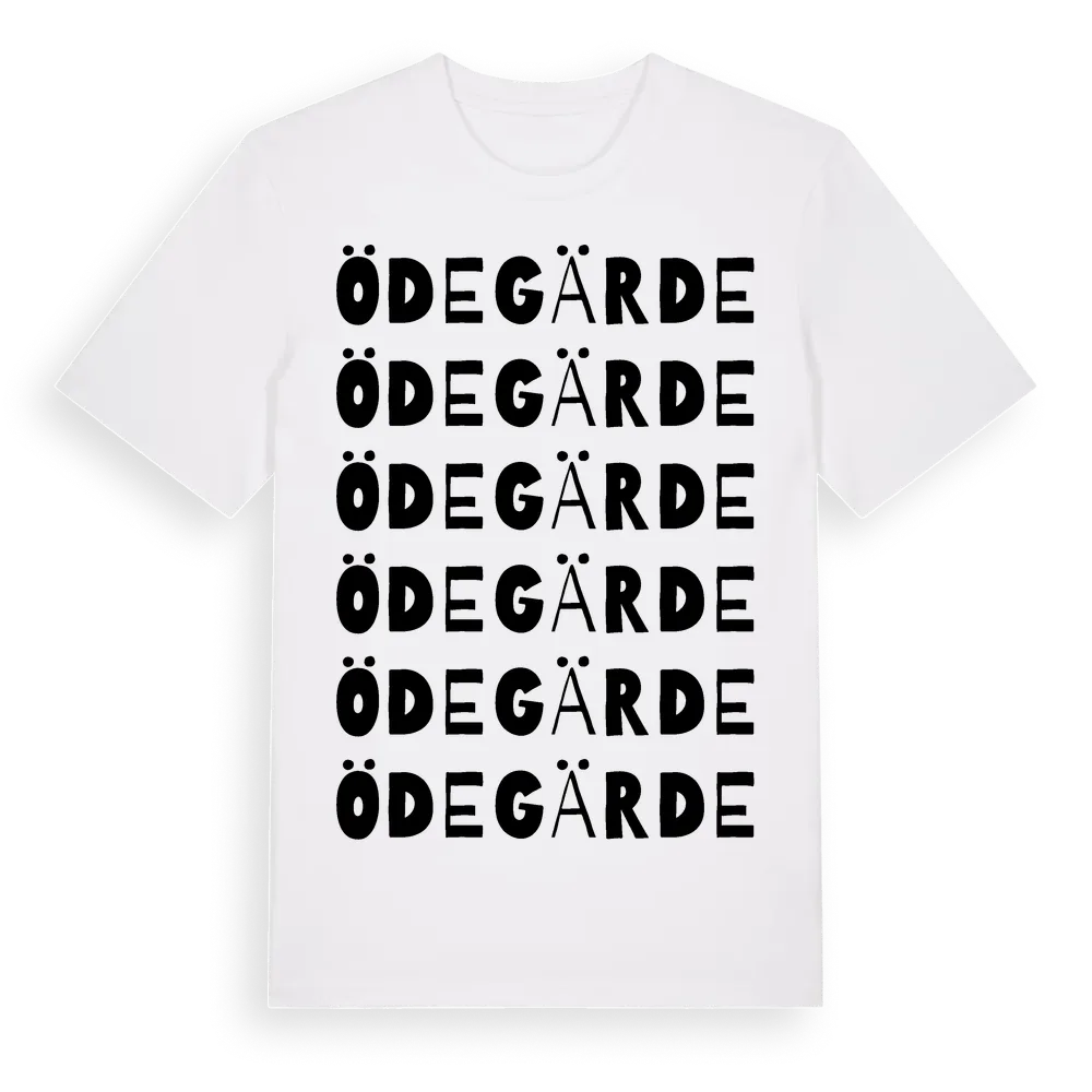 Ödegärde ordlek t-shirt är inspirerad av Ödegärde i Jönköpings län, Sverige. Tröjan är designad för dig som har en speciell koppling till platsen – oavsett om du bor här, har rötterna här eller bara älskar Ödegärde.