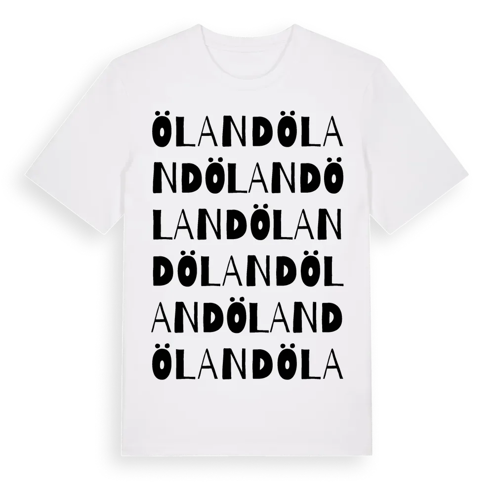 Öland ordlek t-shirt är inspirerad av byn Öland i Jönköpings län, Sverige. Tröjan är designad för dig som har en speciell koppling till platsen – oavsett om du bor här, har rötterna här eller bara älskar Öland.