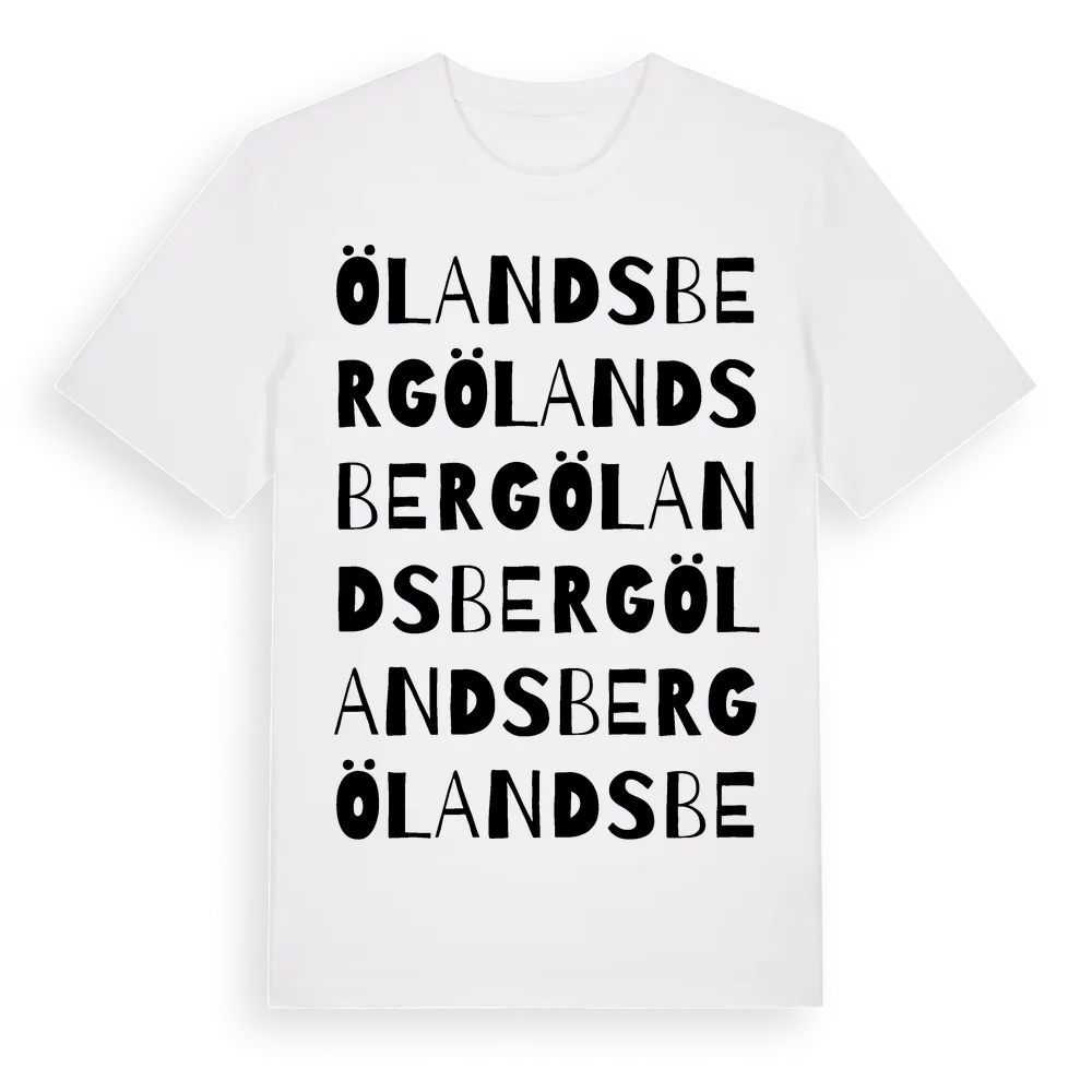 Ölandsberg ordlek t-shirt är inspirerad av Ölandsberg i Jönköpings län, Sverige. Tröjan är designad för dig som har en speciell koppling till platsen – oavsett om du bor här, har rötterna här eller bara älskar Ölandsberg.