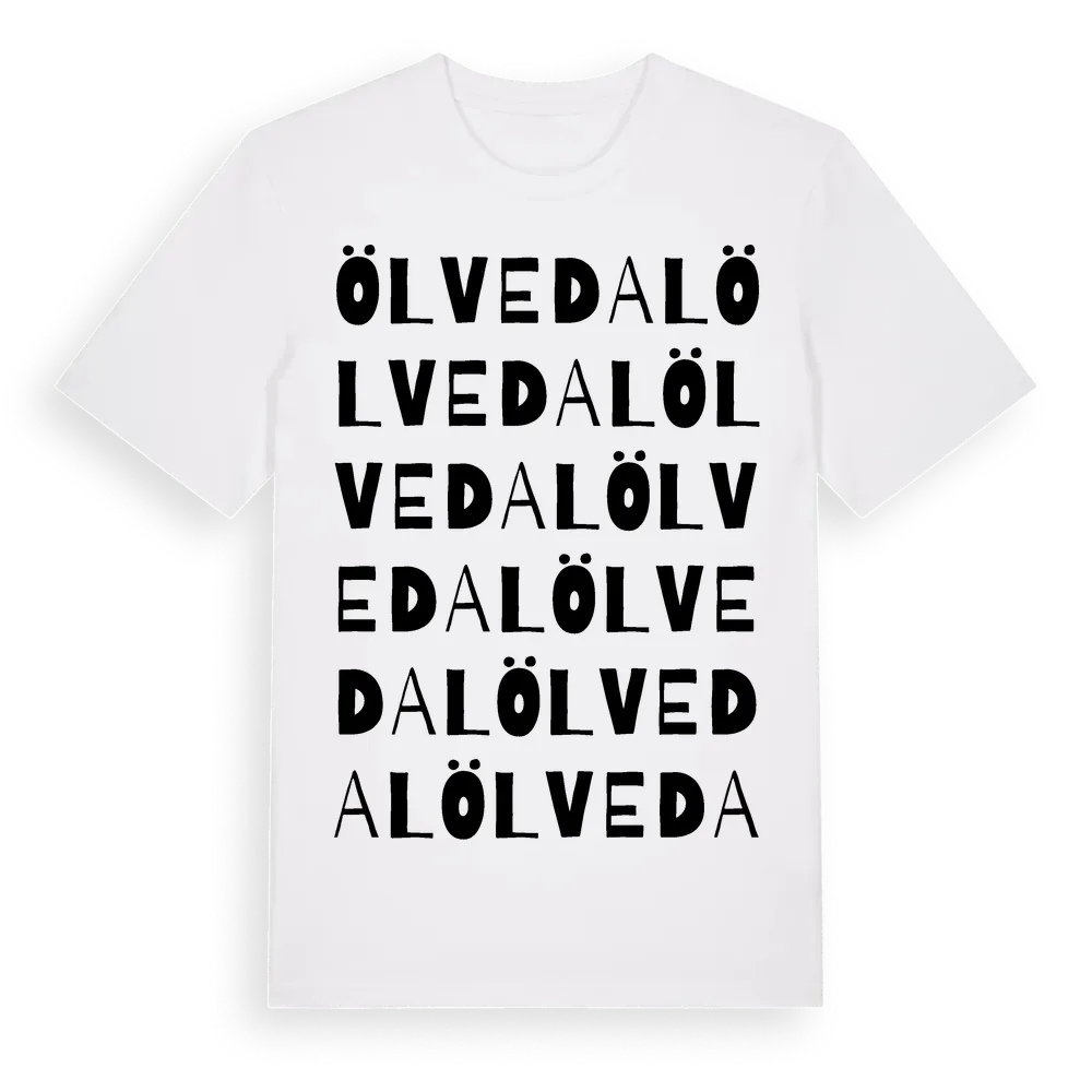Ölvedal ordlek t-shirt är inspirerad av byn Ölvedal i Jönköpings län, Sverige. Tröjan är designad för dig som har en speciell koppling till platsen – oavsett om du bor här, har rötterna här eller bara älskar Ölvedal.