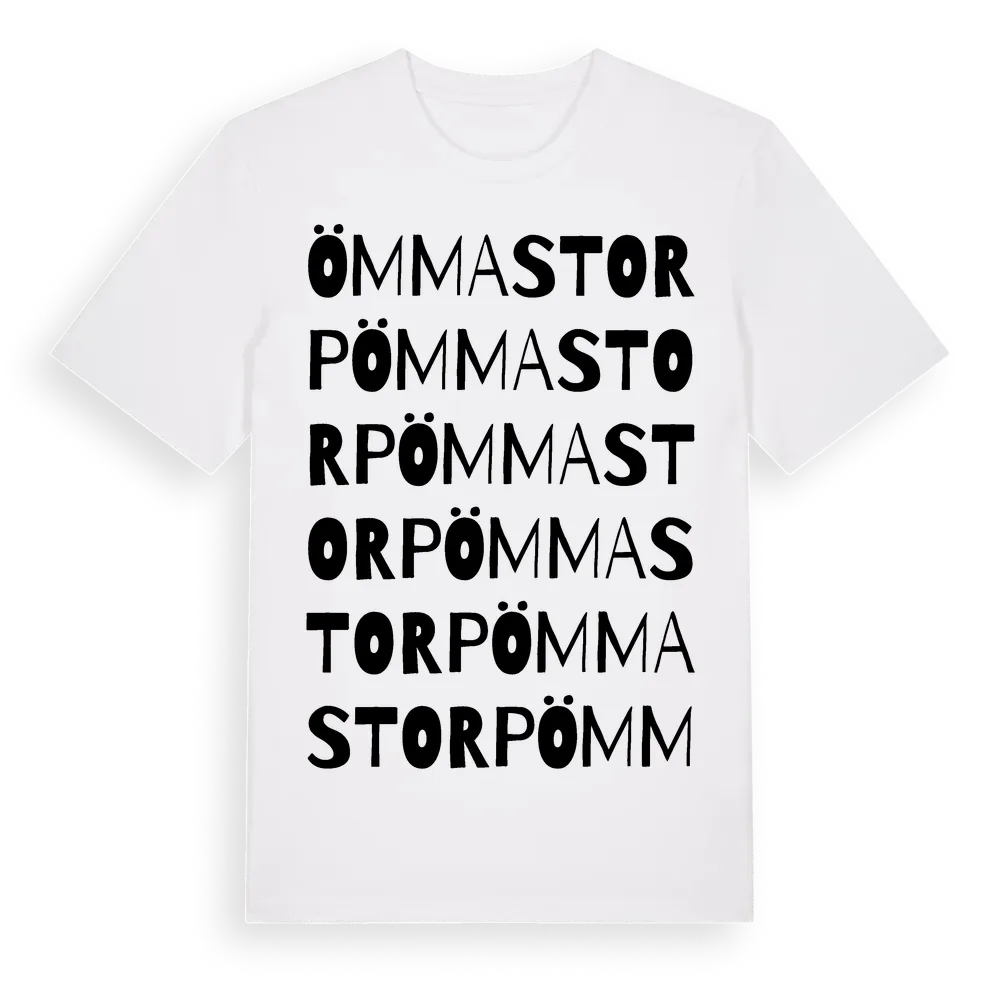 Ömmastorp ordlek t-shirt är inspirerad av Ömmastorp i Jönköpings län, Sverige. Tröjan är designad för dig som har en speciell koppling till platsen – oavsett om du bor här, har rötterna här eller bara älskar Ömmastorp.