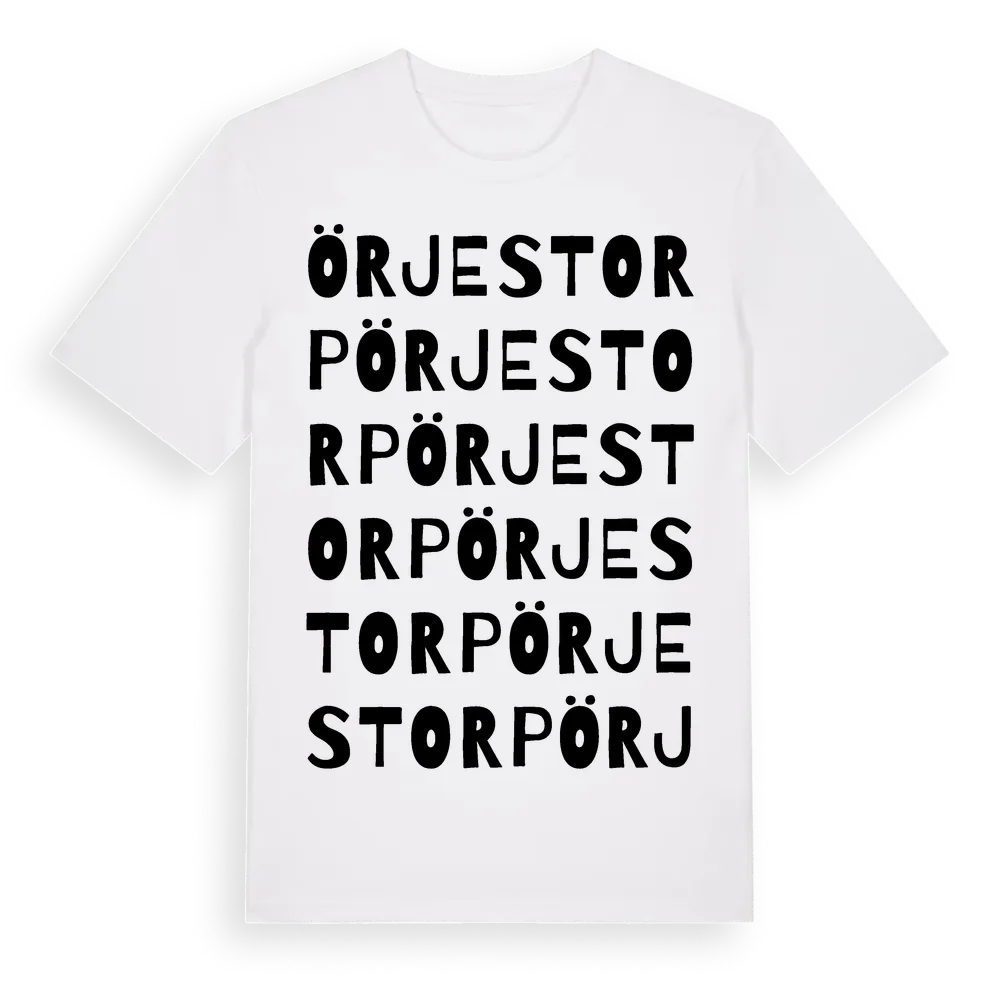 Örjestorp ordlek t-shirt är inspirerad av Örjestorp i Jönköpings län, Sverige. Tröjan är designad för dig som har en speciell koppling till platsen – oavsett om du bor här, har rötterna här eller bara älskar Örjestorp.