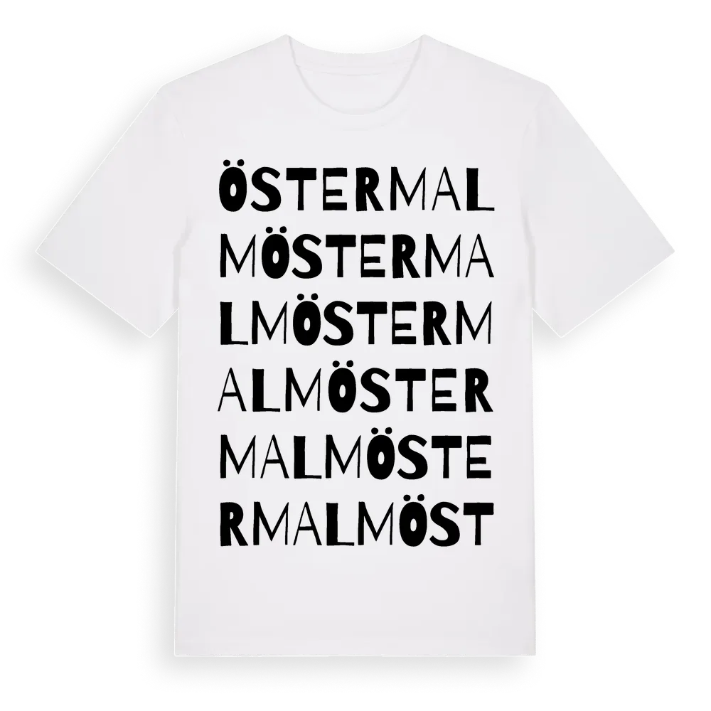 En ordlek byggd på Östermalms namn. Subtilt och klurig – ett motiv som bara de som verkligen känner platsen fullt ut förstår. Premium bomull, unisex – från Östermalm i Jönköpings län.